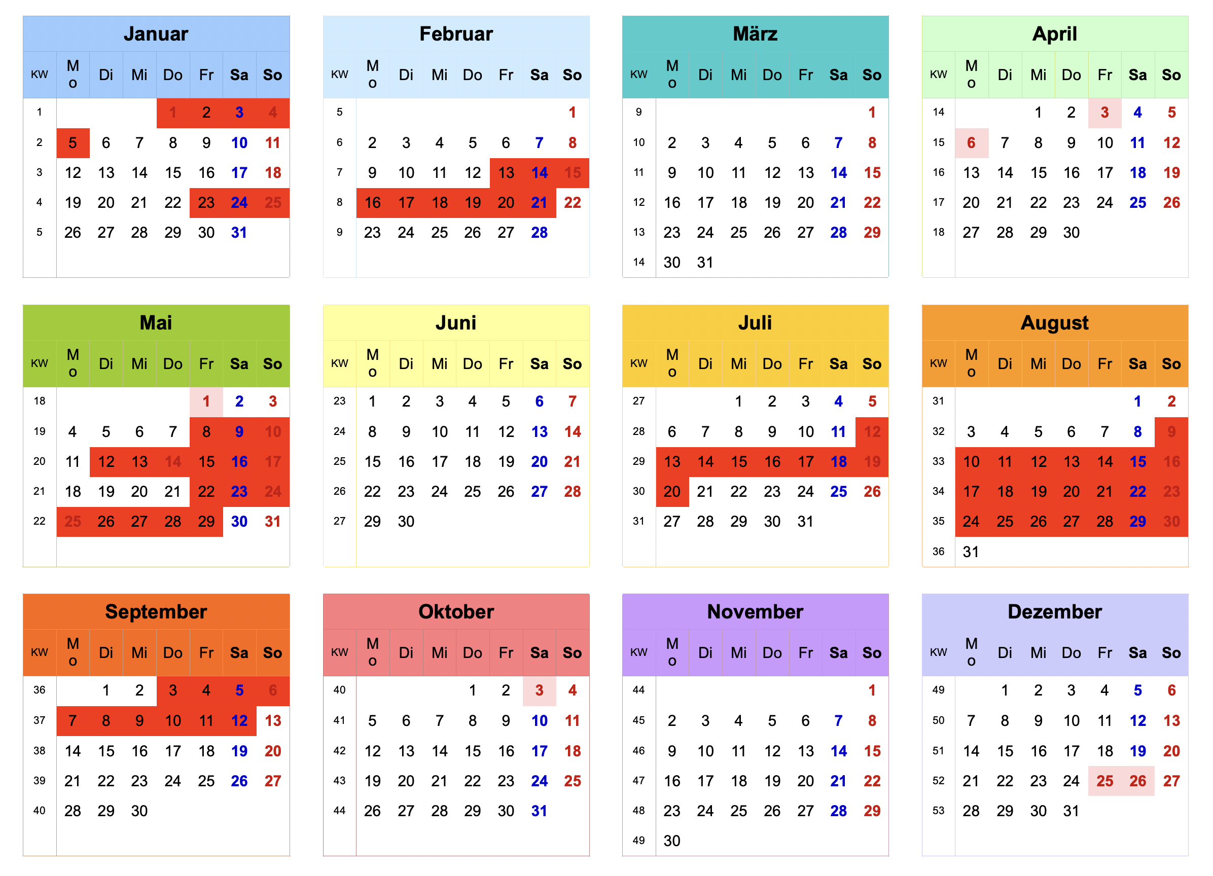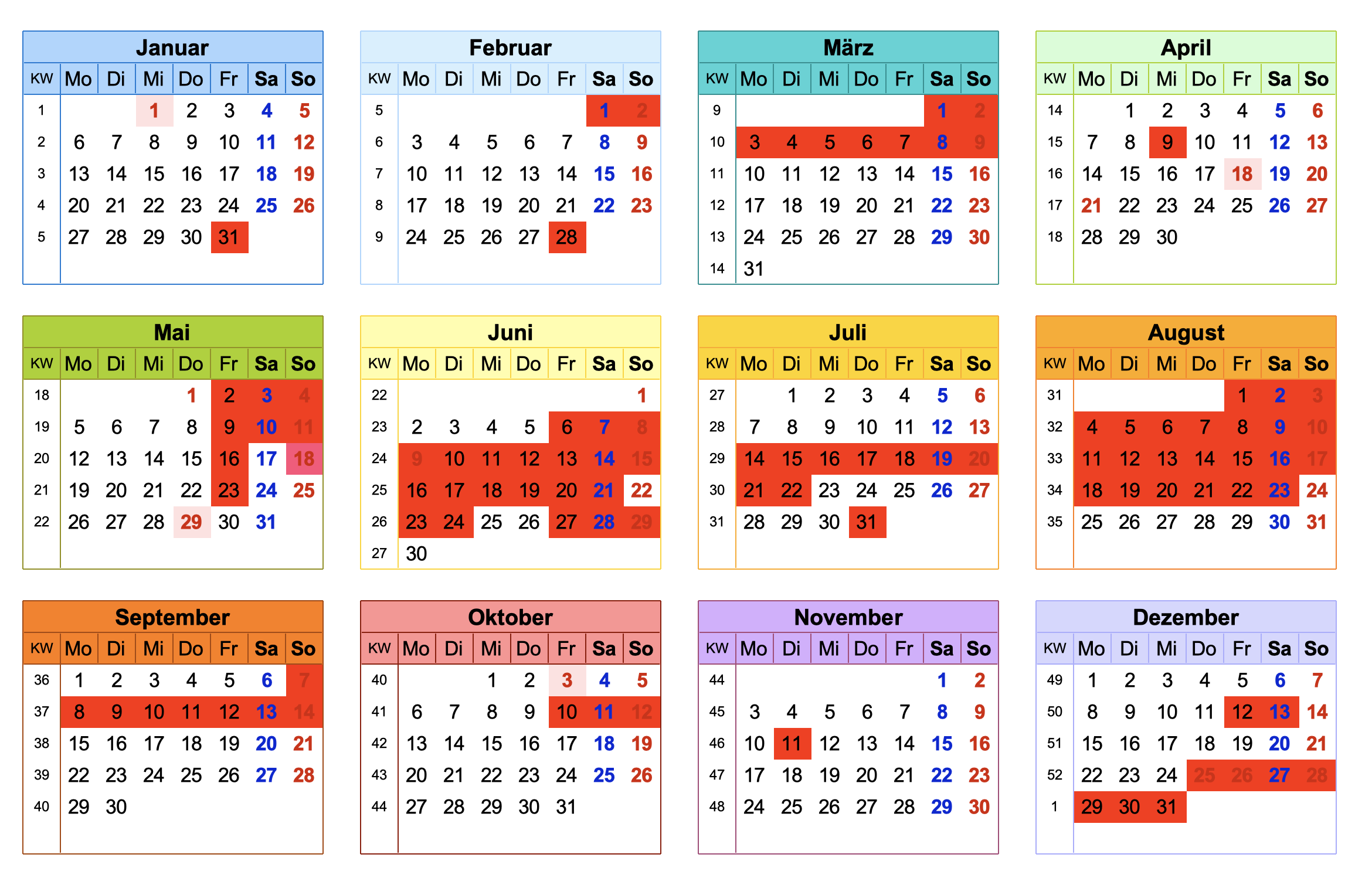 (dunkelrot hinterlegt = reserviert)